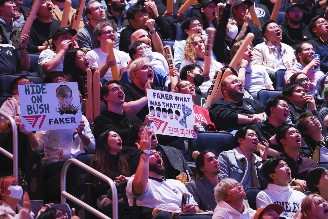 5 novembre 2022 ; San Francisco, Californie, États-Unis ; Les fans tiennent des pancartes pour le mid laner T1 Lee « Faker » Sang-hyeok (non représenté) lors des championnats du monde de League of Legends contre DRX au Chase Center. Crédit obligatoire : Kelley L Cox-Imagn Images Los Angeles Thieves et Paris Gentle Mates ont rejoint OpTic Texas en tête du classement lors de la Call of Duty League Stage 2 Major dimanche, chaque équipe gagnant pour passer à 2-0 lors du tour de qualification.